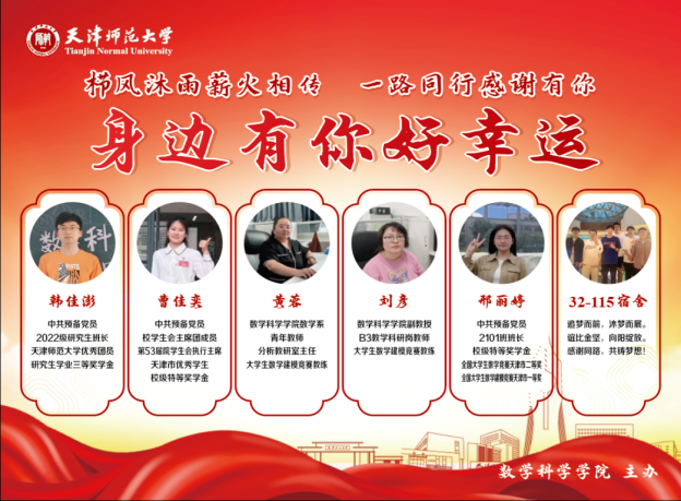 开学典礼结束后,学院举行“身边有你好幸运”表彰会。js6668金沙登录入口黄蓉老师、刘彦老师、2022级研究生韩佳澎、2021级本科生曹佳奕和邢丽婷、35号楼115宿舍分别受到表彰。